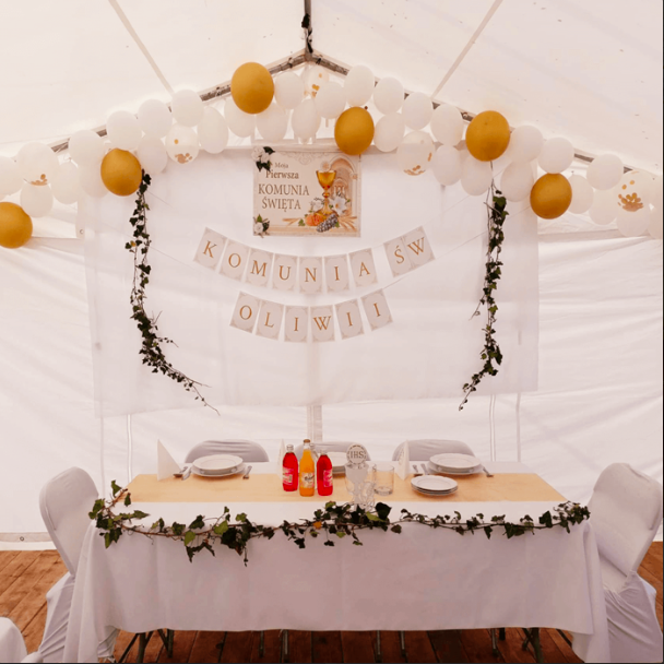 w życiu Twojego dziecka. Aby chociaż w niewielkim stopniu dorównać duchowemu wymiarowi tych Sakramentów oferujemy piękną i stylową zastawę oraz odpowiedni dobór stołów, tekstyliów oraz namiotów