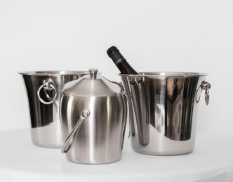 Cooler, wiaderko do wina lub lodu. Metalowe naczynie do przechowywania lodu lub schładzania butelek.