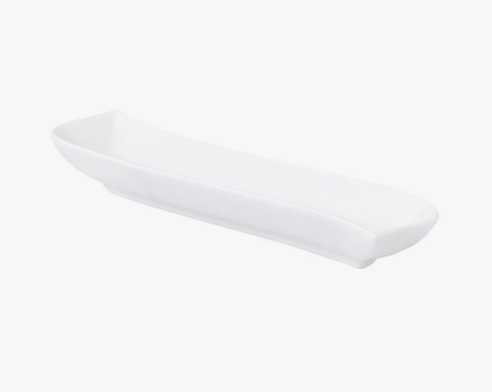 Naczynie łódeczka fala to nowoczesny, geometryczny kształt oraz ciepła biel porcelany. Niezwykle ciekawe połączenie dla miłośników niestandardowych rozwiązań.